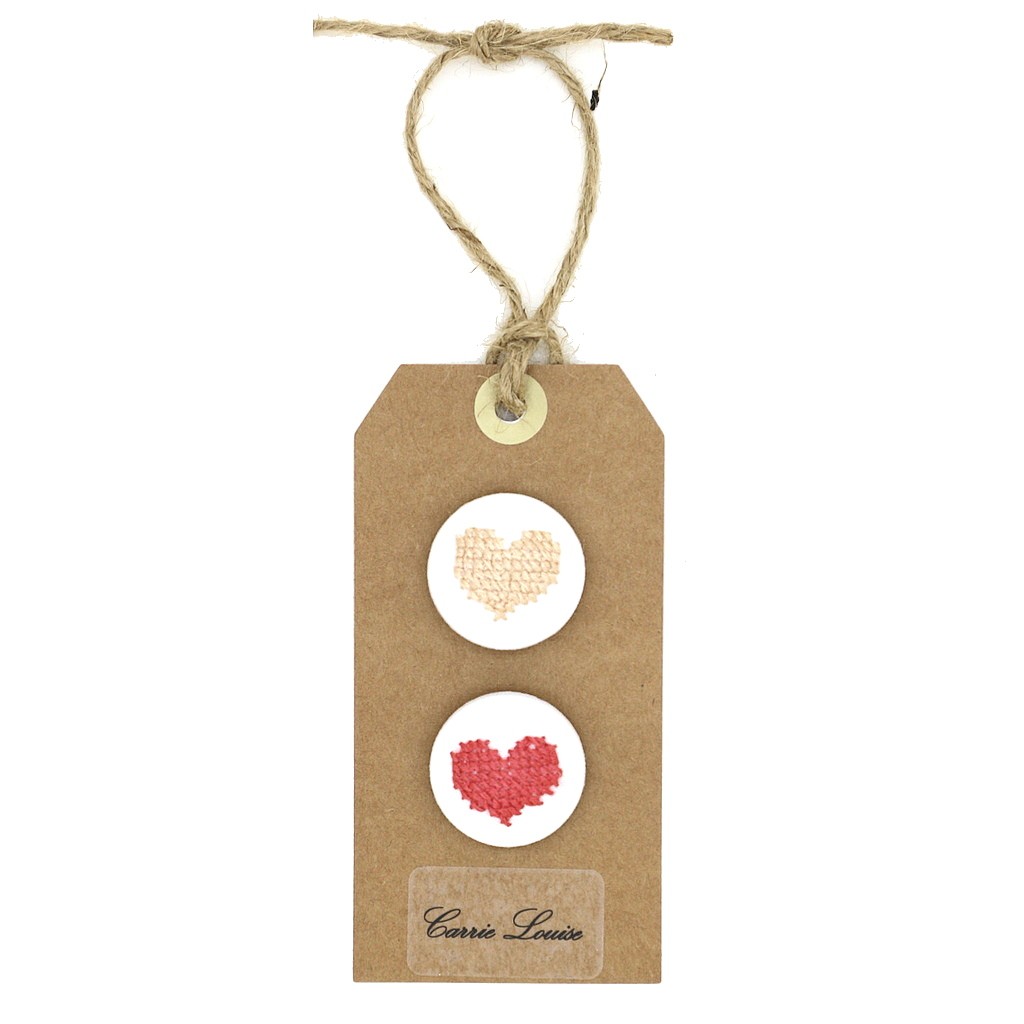 2 Large Salmon Pink and Bright Red Cross Stitch Heart Button Selection