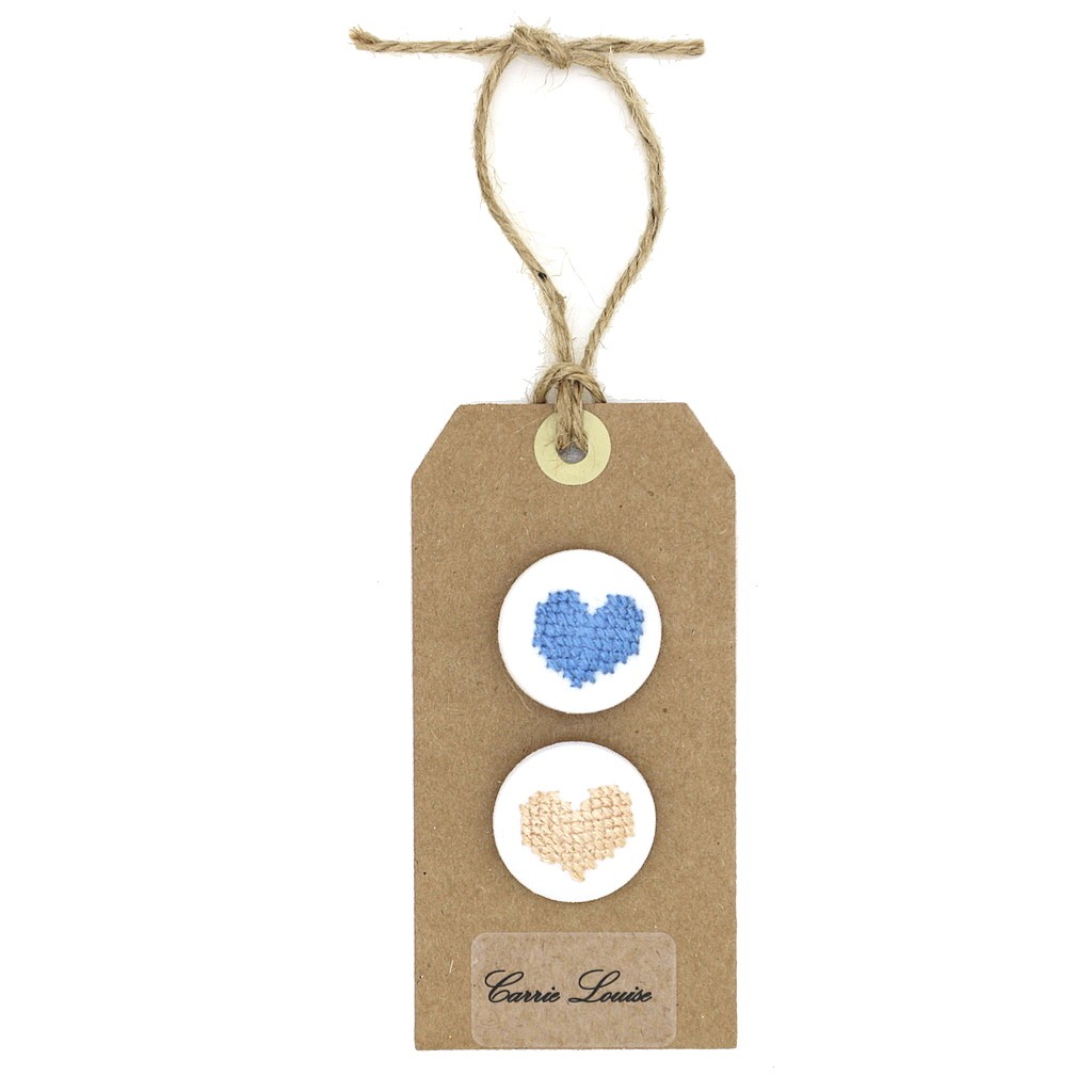 2 Large Blue and Beige Cross Stitch Heart Button Selection