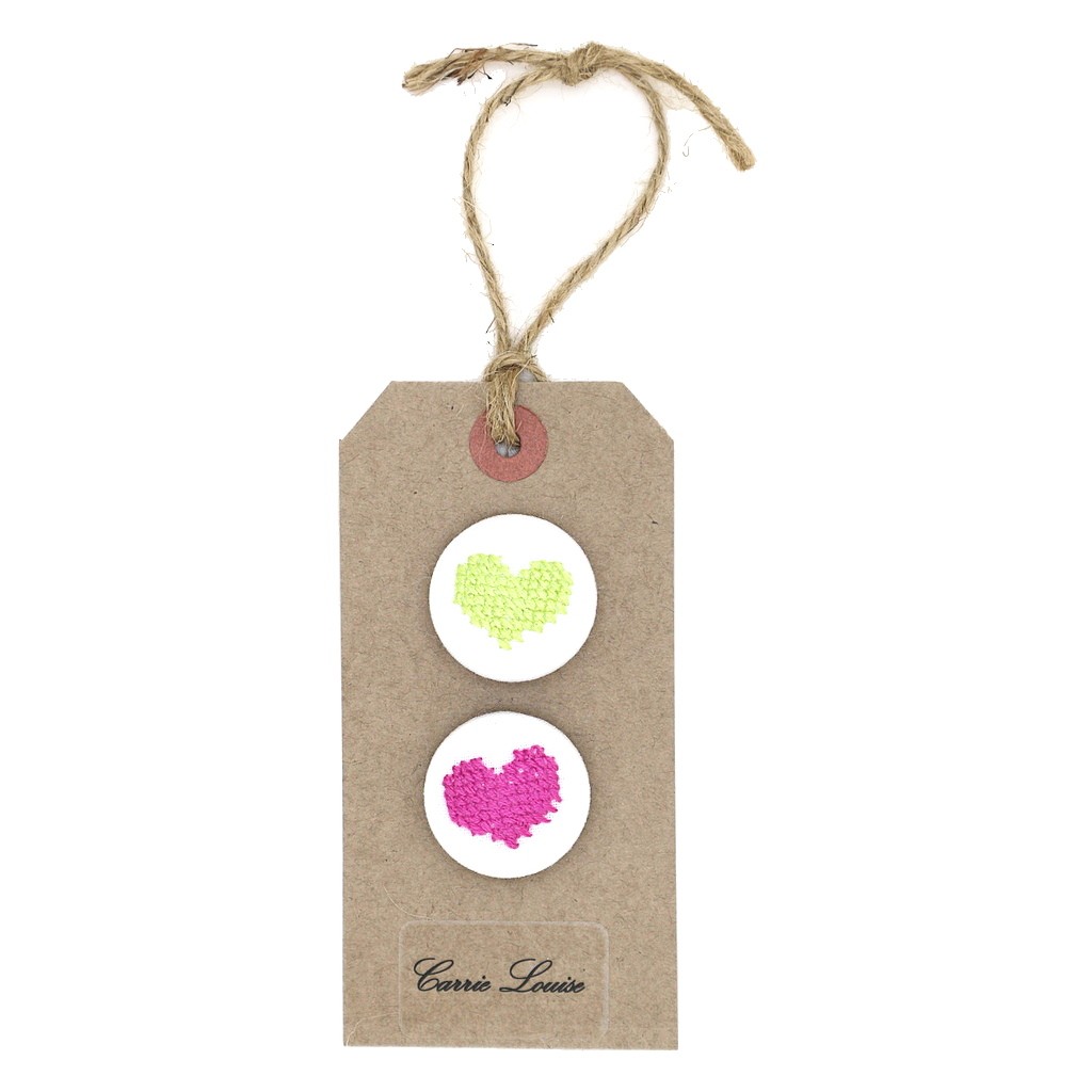 2 Large Pink and Red Cross Stitch Heart Button Selection