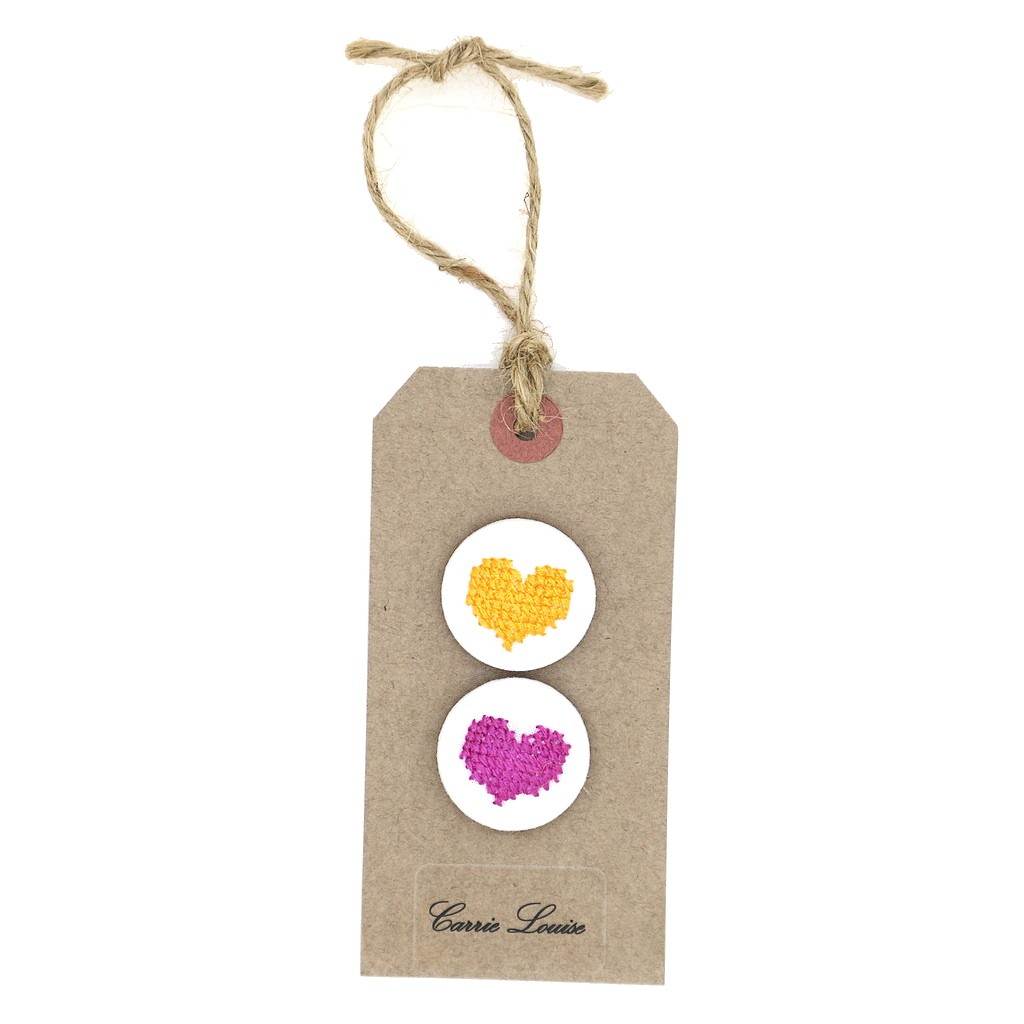 2 Large Orange and Purple Cross Stitch Heart Button Selection