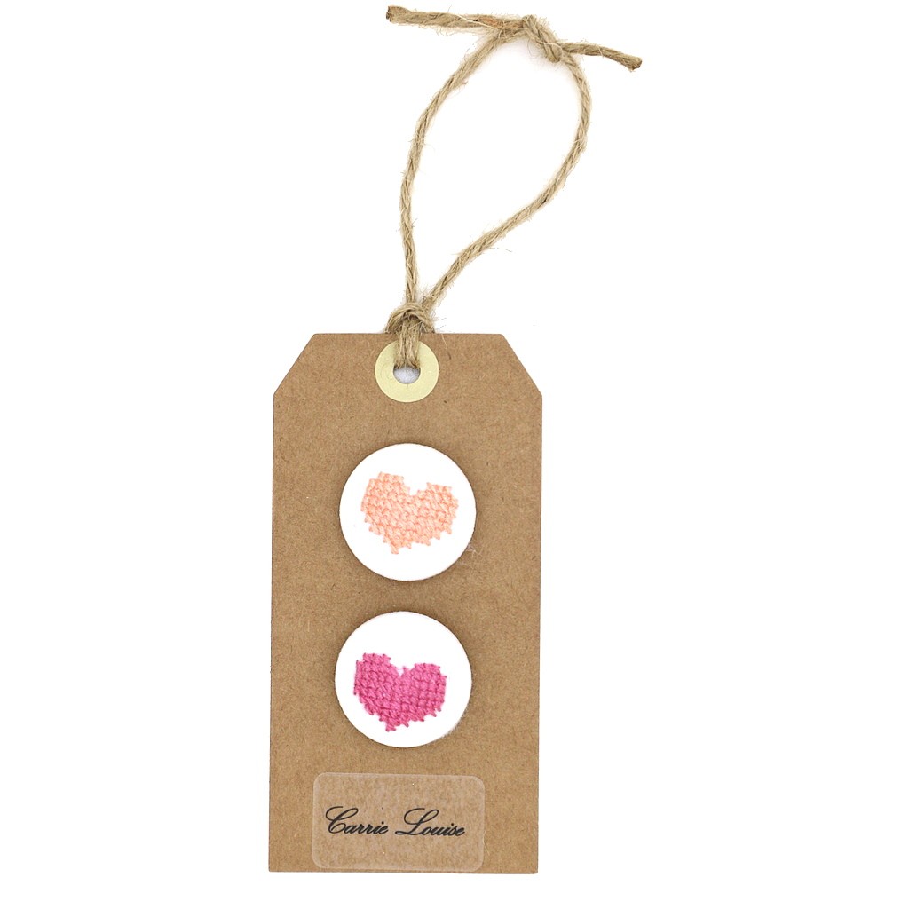 2 Large Salmon Pink and Pink Cross Stitch Heart Button Selection