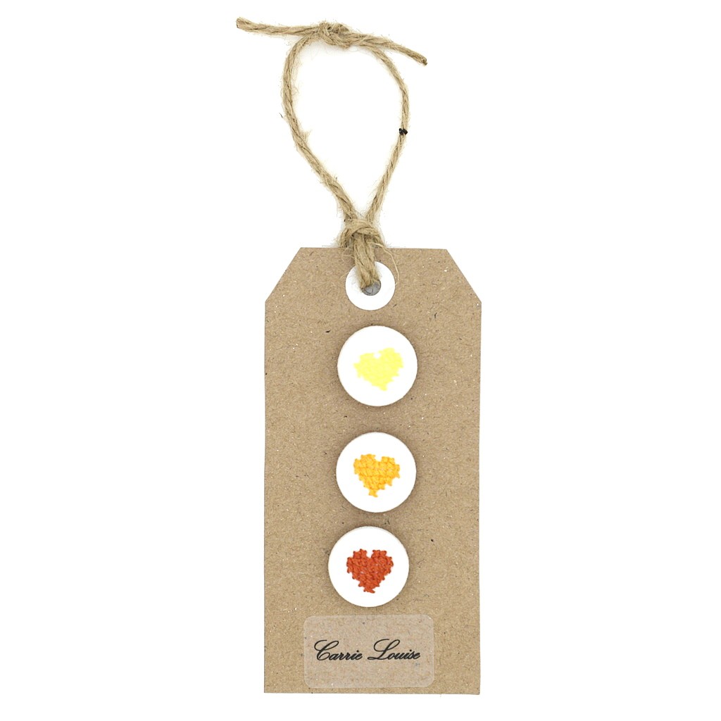 3 Medium Yellow, Orange and Brown Cross Stitch Heart Button Selection quantity